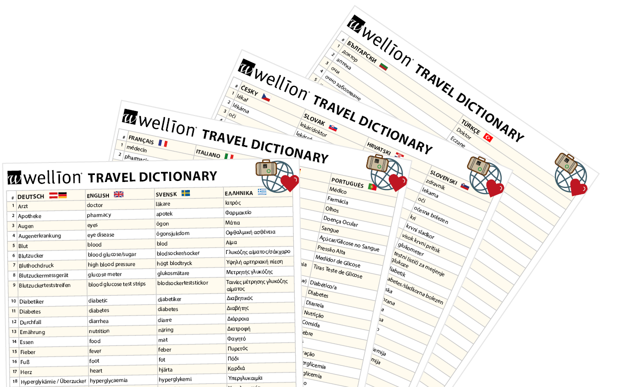 Palavras e frases úteis sobre diabetes e saúde nas seguintes línguas: